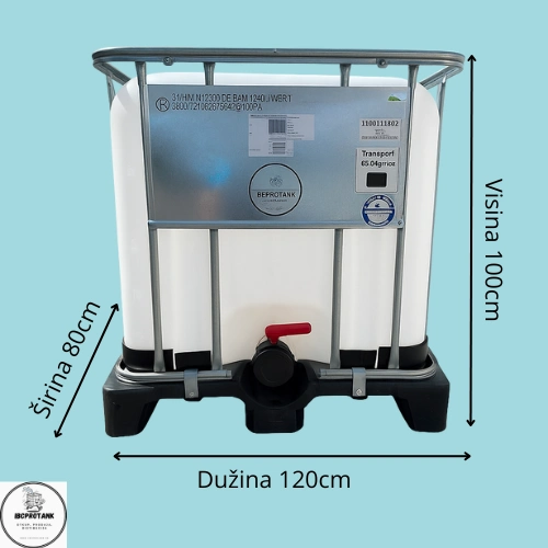 Materijal: HDPE plastika (pogodna za prehrambenu upotrebu) u čeličnom kavezu, otporna na UV zračenje i hemikalije.